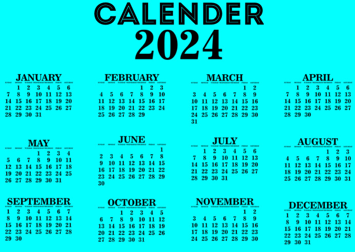 Calendar 2024 Vector Template, Lettering Calendar, Hand drawn