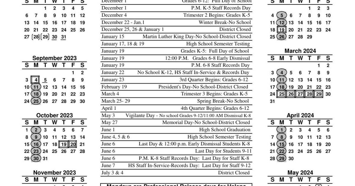 Helena School District Calendar 2024